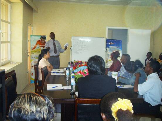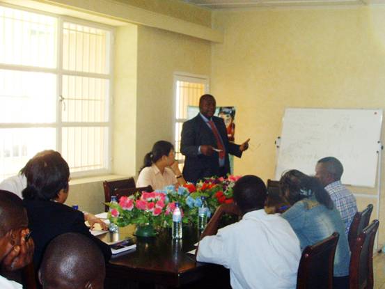 À dix heures juste du 26 janvier 2008, la Filiale GREEN WORLD R.D.C a organisé la Première Session d'Évaluation et Sélection des Conférenciers. La filiale a choisi 6 conférenciers parmi une vingtaine de conférenciers et leur a laissés essayer à présenter principalement la connaissance des produits et le projet des affaires de GREEN WORLD, et a invité tous les distributeurs 5-étoiles et certains distributeurs communs à participer à la vérification sur place cependant. Cette activité s'est ouverte à l'ambiance enthousiaste, d'abord M. DU Fugang le Manager de la Filiale a pris la parole et a exprimé sa grande considération à propos de la formation, et a donné son affirmative aux participants actifs pour leur travail.