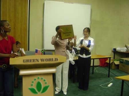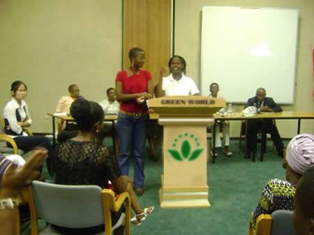 Au cours de la réunion, M. Pule, Mme Masilo Phatsimo et Mme Pricilia Lebura ont fait les merveilleux discours respectivement pour partager leurs expériences de réussite. Green World Botawana a entré en vigueur en Juillet 2007 et le premier Centre de Distribution No.017 a été établi par M. Mayce Matshameko. Depuis, l'entreprise Green World a développé en plein d'ardeur. Pour répondre à la demande croissante des produits de Green World, le second Centre de Distribution No.033 a été établi par Mme Pricilia Lebura à Gaborone.