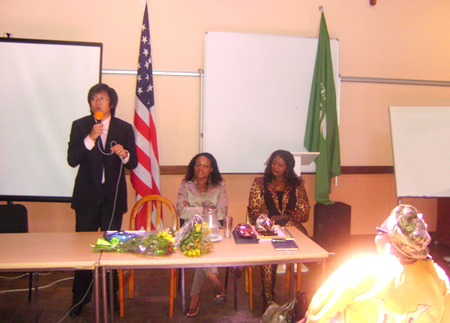 Le lendemain, M. Jony Yu, manager général de Green World Afrique du Sud, accompagné par trois gagnants de voiture Mme Shakela Tuyeimo, Mme Maart Jattie Selma et Mme Iyambo Martha a visité la ville Oshakati, où si situe le 3ème Centre de Distribution au marché en Namibie. De plus, il a accueilli près de 350 distributeurs qui ont souffert des inondations mais ont toujours consacré au business de Green World au Centre de Conférence Lodge du pays Oshakati, a présenté son encouragement spécial et une conférence de formation pour eux.