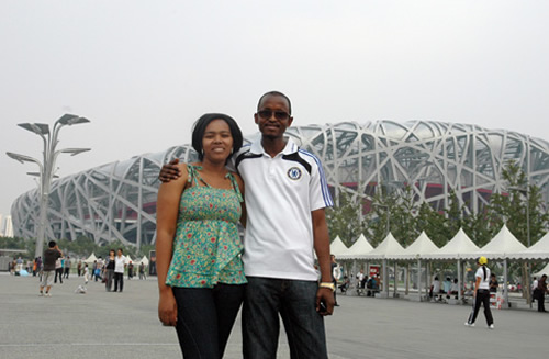 A trois heures d'après-midi, les distributeurs excellents africains sont arrivés aux endroits des Jeux Olympiques---le nid d'oiseau et le cube d'eau.