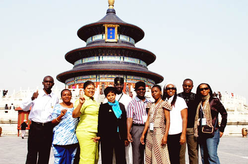 Selon le programme fixé, le matin du 19, les distributeurs sont arrivés à la place de Tian An Men---la plus grande place du monde. A l’arrivée, quelques personnes âgées y ont fait des exercices. Certains entre eux ont appris le Taiji. L’après-midi, les distributeurs ont fait la visite au parc du Temple du Ciel. MICHAEL OTIENO ABAYO a dit que « chez nous, dans le parc, la plupart sont des animaux sauvages et le paysage naturel ; mais ici, avec les bâtiments anciens, je me sens le mystère oriental.