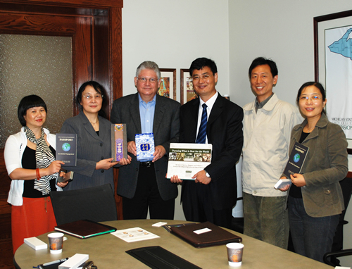 Le 2 octobre 2009, Dr.Deming Li Présidente de Green World, le directeur d’Institut d’Agriculture Scientifique dans la province de Jiangsu, Chine, les scientifiques spécialisés dans la sécurité d’alimentation ainsi que M. scott winterstein, le directeur du Centre National de Sécurité d’Alimentation et de