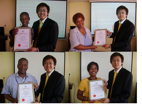 Le 28 et 29 novembre 2009, grâce à la coordination cordiale et à la préparation précieuse de toutes les personnes, Green World L’Afrique du Sud a tenu avec grand succès la conférence la plus solennelle de formation de distributeurs supérieurs. Les participants présents étaient y compris, M.David Zhang, Président de la Zone de l’Afrique de Green World ; les dirigeants supérieurs autour de Johannesburg ; Mme Olga, lauréate de la première voiture du Royaume du Swaziland ; Mme Priscilla et son mari, lauréate de la première voiture du Botswana ; ainsi que la dizaine de distributeurs supérieurs venus du Lesotho, les provinces éloignées de l’Afrique du Sud etc.