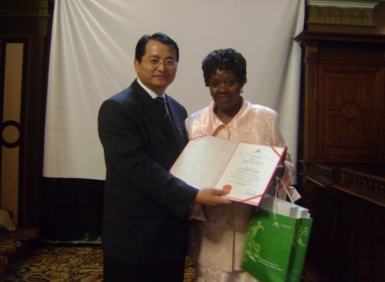 La cérémonie de décerner le prix a suivi: Jony Yu, directeur de Green World L’Afrique, a décerné la licence d’autorisation d’exploitation à M. David Cletus, chef du Pretoria de Centre de Distribution. M. David Zhang a décerné le certificat de Green World Ambassadrice à Mme Sibongile Nkomo. De plus, quatre distributeurs ont obtenu DVD, le prix de la croissance rapide et cinq distributeurs ont obtenu le certificat d’honneur de Green World.