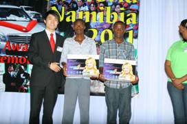 Au cours de la Conférence de Prix de Voiture,Green World a décerné divers prix à ceux qui travaillent dur, parmi les lauréats, 10 ont été attribués le Prix de Croissance Rapide avec les DVD, décerné par M. Jacky Zhao, manager informatique de Green World Namibie; 4 ont été attribués le Prix de Distributeur 6 Etoiles Excellent avec les téléphones mobiles modernes, décerné par Mlle. Mel Zhang, manager financier de Green World Namibie; 1 a été attribué le Prix de Distributeur Exceptionnel avec l'imprimante multifonctionnelle, décerné par Mlle. Xiaoping Chen, l’adjointe du directeur général de Green World Namibie; et 1 a été attribué le Prix de Distributeur 7 Etoiles Excellent avec un four à micro-ondes, décerné par M. Joseph Auala, directeur exécutif par intérim de l’OEWONA. La cérémonie était pleine d’émotions et tout le monde était heureux!