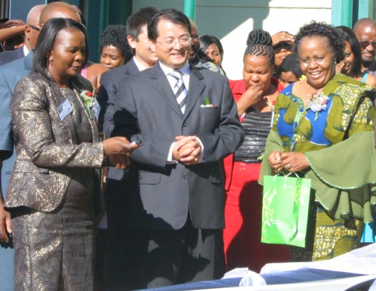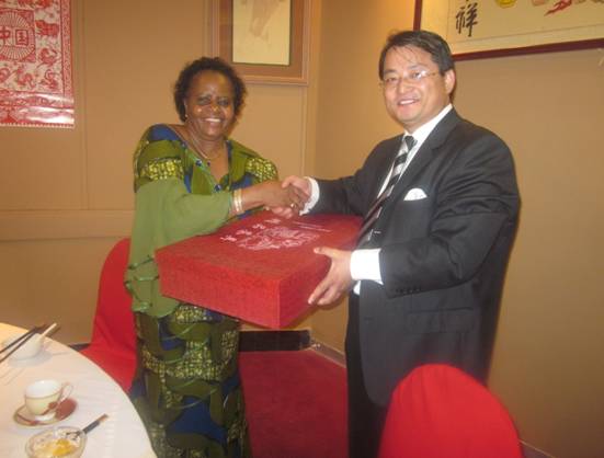 Et M. David L. Zhang et la Première Dame Penehupifo Pohamba ont également échangé des présents au banquet.