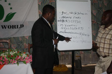Ensuite, mme Mary, le distributeur du département de compter, a fait un discours intéressant. Elle a introduit les produits de GREENWORLD au Congo-Kinshasa et elle a dit que les produits de GREENWORLD a approuvé par les distributeurs et les grands hôpitaux et les gouvernements. Le groupe GREENWORLD a fait des efforts pour améliorer le niveau de la santé du peuple Congo-Kinshasa et offrir plus de chance de travailler, elle espère que les distributeurs de la région GOMA peuvent diffuser l’idée de gérance de GREENWORLD et les encourager d’élargir le marché de la cité moyenne et petit d’est. Ensuite, WELCOM, l’assistant du marché, a introduit le plan du marché du second semestre de 2011 au premier semestre de 2012 de notre société.
