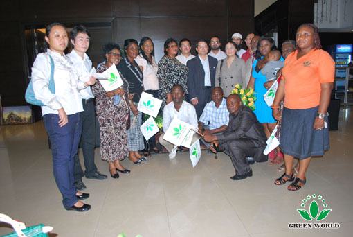 A après-midi du 18 novembre, Monsieur David ZHANG, Vice-Président de Groupe Green World, Président de Green World Afrique et les représentants de distributeurs de Calabar ont accueilli le président Deming Li et monsieur Xifeng Lu, le président de la région Asie de sud et leur équipe. Les distributeurs ont brandi les drapeaux à l’aéroport pour exprimer Leurs chaleurs infinies des produits et la société de GROUPE GREEN WORLD.