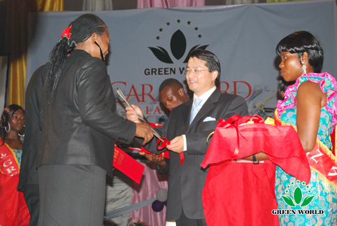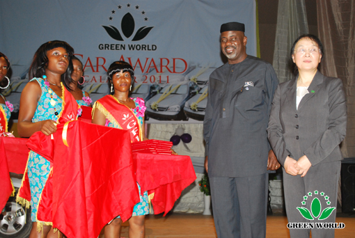 Et après, Monsieur David ZHANG, Vice-Président de Groupe Green World, Président de Green World Afrique, le vice –gouverneur de CROSS RIVER STATE et monsieur Xifeng Lu, le président de la région de Asie de sud et les participants de VIP ont décerné les prix de voiture aux lauréats un après l’autre.
