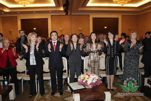 Le 10 décembre, 2011, les places de la salle de l’hôtel de Leogrand Hotel, une hôtel de la ville de Chişinău, capital de Moldavie, plus de 700 distributeurs de Moldavie, roumain, Russie, Ukraine et Macédoine etc. ont rejoint ici pour voir et célébrer la cérémonie d’ouverture de magasin spécial de Moldavie de Green World. Madame Deming Li, le président de Groupe Green World, monsieur Yanguo Chen, Vice-Président de Groupe Green World, Président de Green World Asia-europe, madame Xiaohong Wang, le manager de la filiale Ukraine, ont arrivé de participé la cérémonie de moldavie.