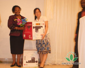 MRS.NKUYO, le patron de magasin spécial 563, a gagné une télévision LCD et une machine de corps soin, elle ne peut retenir la joie dans le cœur et fait l’expérience sur place. Elle a partagé leur expérience réussie après l’invitation de présentateur. Elle a partagé de comment devenir un patron de magasin spécial excellent et comment fait leur équipe de gagné de 11 voitures commerciales, toutes les places sont encouragées et avec applaudissement chaleureux.