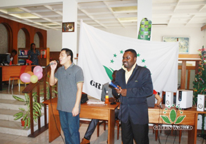 Après le match de troisième tour ,le propriétaire du magasin de numéro 009 ,Monsieur Benjamin nous a raconté son histoire avec Green World ,son histoire a touché tous les gens sur place ,et il a gagné des applaudissements sans cesse.