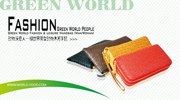 Groupe Green World conçoit une série de sacs à main de mode. Ce type de sac à main est dévisé en deux styles. Il contient 4 couleurs : rouge, jaune, brun, noire. Les couleurs sont vives et à la mode. La surface du cuir de chaque sac à main est soigneusement polie. La conception est spéciale sur laquelle il y a des mots « Green World », c’est la combinaison de la mode et la technologie. La forme est belle, et en même temps, on peut mettre beaucoup de choses dans le sac à main, il est pratique à être porté, en outre, il montre la culture de Green World . Ce produit va voir le jour à la fête du voyage du printemps de cette année.