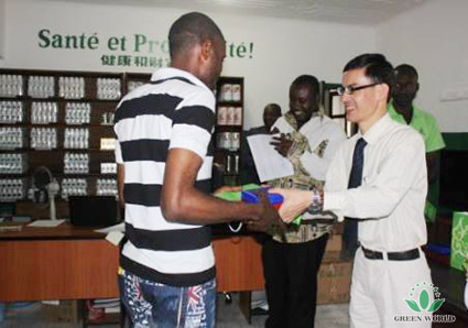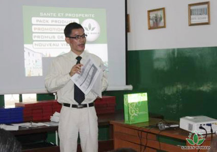 En avril, au cours de la réunion au Congo Brazzaville, directeur Deng donne l’affirmation aux excellents distributeurs, chaque distributeur reçoit un cadeau spécial, nouvelle liste de prix, liste de promotion des produits,liste de l’explication du système de l’entreprise, Deng explique détaillément comment utiliser ces trois listes, pendant des jours qui viennent qu’on développe l’équipe.