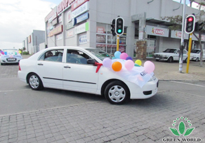 Monsieur Zhang prend la photo avec Mmw.NTSWAYI PHATHEKA devant sa voiture