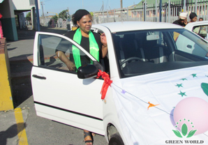 Mme.NTLANGGANISO TABISA conduit sa nouvelle voiture avec joie