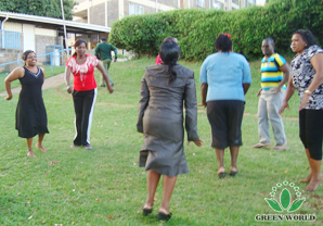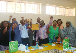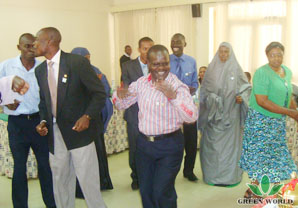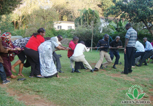 Directeur de la filiale de Green World à Kenya fait un magnifique discours et gagne des applaudissements. Après la cérémonie, l’animateur présente les participants et leurs équipes: GOLD Team et GREEN Team