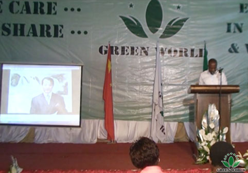 Suivant, on a projeté la vidéo du discours du vice-président de Green World Groupe et président de zone d’Afrique Monsieur Zhang Liangjun. Il a présenté tout d’abord la situation du développement de Green World et il est satisfait des résultats obtenus à zone d’Afrique. Président Zhang a encouragé tous les distributeurs à bien travailler dans le domaine de l’exploitation du marché et a souhaité tout le monde être plein de confiance sur l’avenir de Green World. Les paroles de Président Zhang ont inspiré tous les gens sur place et a gagné des applaudissements chaleureux.