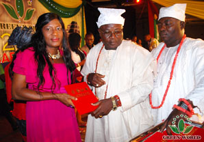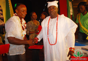 Deux envoyés spéciaux envoyés par Roi nigérian OBA RILIWAN BABA TUNDE OSUOLALE AREMU AKIOLU 1(CFR) et Olorogun Abaje de Lagos ont prononcé des paroles et décerné le prix aux distributeurs