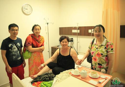 Présidente Deming Li de Groupe Green World visite une distributrice malade à l’hôpital au cours du voyage