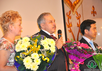 Au cours de la cérémonie d'inauguration, Vice-Président de Groupe Green World, Président de Green World Europe-Asie Monsieur Yanguo Chen a transmis des félicitations de Présidente de Groupe Grenn World Madame Deming Li sur l'inauguration de la filiale de Groupe Green World au Kazakhstan, elle a encouragé aux distributeurs de bien travailler, d’établir l’équioe de distributeurs et d’élever le brillant exploit du marché du Kazakhstan! Directeur de la filiale de Groupe Green World au Kazakhstan Monsieur Sergei a pris des paroles qu’il irait servir tous les distributeurs de tous ses efforts et offrir de bonnes conditions pour développer les affaires de Green World!