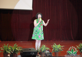 Au nom de Groupe Green World, Madame Deming Li, présidente de Groupe Green World a prononcé des paroles et a introduit la histoire du développement, la situation du développement et la présentation du produit dans le monde entier ainsi que la planification du développement de Groupe dans le futur, ses paroles ont gagné des applaudissements chaleureux.