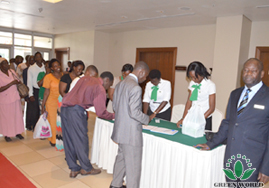 Le 12 juillet 2013,la filiale de Groupe Green World à l’Urganda a convoqué la réunion de décernement à l’hôtel Sheraton à Kampala, la capitale de l’Uganda. Plus de 500 distributeurs venant de différents endroits de l’Uganda ont assisté à cette réunion. Avant la réunion, ils ont participé à un banquet tout d’abord.Une heure trente d’après-midi, la réunion est commencée.