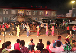 La nuit est tombée, tout le monde a pris le dîner à l’hôtel LingYun qui est en montagne de 1700 mêtres de haut.Tout le monde a apprécié les spectacles locaux au dehors de l’hôtel et a chanté ensemble les mains dans les mains, l’air est plein de la chanson.Par ailleurs, Professeur Yinfeng Fan a chanté 《难忘今宵》, une chanson chinoise.