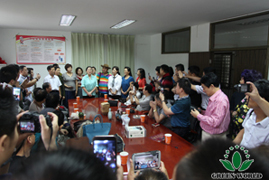 Dix heures cinquante 5 septembre, plus de 80 distributeurs de Green World Chine sont arrivés au parc industriel de high-tech de l'agriculture moderne de l’hôtel 4 étoiles se trouvé Baima commune à Lishui de Nanjing.Dans la salle de réception, présidente de Groupe Docteur Deming Li qui est venue de revenir des Etats Unis a accueilli les familles de Green World, tout le monde a visité l’usine de Groupe de Mûre et le chantier en construction de Groupe Green World sous la pluie et sous la direction de Présidente Deming li, assistante Ying Liang et vice-président de Green World Chine Monsieur Yifan Wang et vice-présidente exécutive Madame Aili Wang