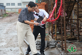 Docteur Deming Li accompagne tout le monde à visiter le chantier de Green World à Lishui,Fêter la cérémonie du plafonnement de l’atelier GMP,Docteur Deming Li prend la photo avec tout le monde devant la porte de Groupe de Mûre,Vice-président de Green World Chine Monsieur Yifan Wang, vice-président exécutif Madame Aili Wang et tout le monde visitent le chantier à Lishui