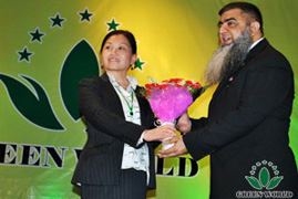 Accompagnés par des chants de Coran, la réunion d’honneur 《étoilée》 a commencé. Directrice de la filiale de Green World au Pakistan Madame Fengqi Liu a pris des mots de bienvenue. Tout d’abord, elle a présenté l’équipe de gestion de la filiale de Green World au Pakistan et a transmis les félicitations de présidente Deming Li. Et elle a saluté tout le monde en urdu et a présenté la bienvenu à l’arrivée des distributeurs.