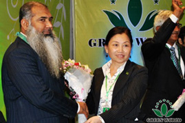 Directrice de la filiale de Green World au Pakistan Madame Fengqi Liu décerne le prix au distributeur 7 étoiles Docteur M Habib