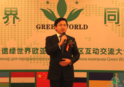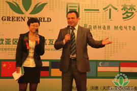 Le 4 novembre 2013, la réunion d’échange de distributeurs de Zone d’Asie-Europe et distributeurs de Zone de Chine de Groupe Green World s’est tenue à Tianjin. Présidente Deming Li a personellement participé à cette réunion, vice-président de Groupe Green World et président de zone d’Asie- Europe Monsieur Yanguo Chen, vice-président de Groupe Green World Chine Monsieur Yifan Wang, vice-présidente exécutive de Groupe Green World Chine Madame Aili Wang, directrice de la filiale Ukraine Madame Xiaohong Wang et assistante de présidente de Groupe Green World Madame Ying Liang ont également assisté à cette réunion. Cette réunion a invité encore plus de 500 distributeurs excellents venant de Russie, du Tadjikistan,d'Ukraine,de l'Ouzbékistan et de Chine.