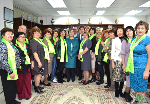 Le 5 novembre 2013, avec la gloire et les rêves, les attentes et les désirs, d'excellents distributeurs de Green World en provenance du Kazakhstan, de Russie, du Tadjikistan, d'Ukraine, de l'Ouzbékistan et de la région eurasienne se sont réunis à la base de production de Groupe Green World à Tianjin pour une visite. Dr Deming Li, présidente de Groupe Green World, a chaleureusement accueilli les invités et a tenu la cérémonie de bienvenue chaleureuse pour eux.