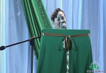 MmeConnie Kang, directrice générale de la filiale de Green World de Durban en Afriquedu Sud, fait une allocution de bienvenue