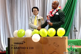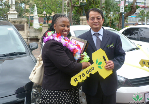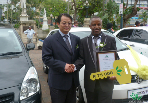 Lorsde la conférence de l'attribution de voitures, le prix de star de distributeur del'année de l’Afrique du Sud a été décerné. Le gagnant est M. Nkiwane MTHABISI,chef de l'équipe la plus active qui a atteint une énorme performance cetteannée. Dans son discours, il a dit avec excitation que le mouvement en Afriquedu Sud pour la liberté et la démocratie, dirigée par M. Mandela, ex-présidentde l'Afrique du Sud, avait obtenu un succès et Green World et des distributeursde Green World feraient contribution au développement économique de l’Afriquedu Sud et à la santé des personnes de l’Afrique du Sud.