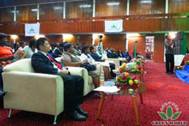 MmeNgidi Thembisile, distributrice de haut niveau de l’ Afrique du Sud de Groupe GreenWorld, et M. Tendai Chinoperekwei, distributeur de haut niveau et conférencierinternational du Zimbabwe de Green World, font respectivement des discours quiont inspiré grandement les distributeurs présents