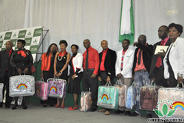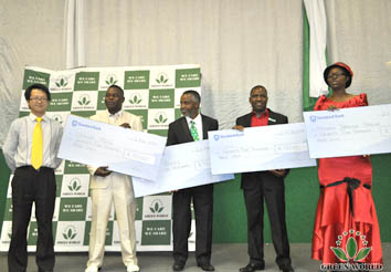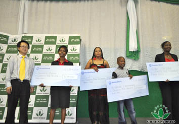 M.Glory Guo, directeur général de la filaile à Johannesburg du Groupe Green WorldAfrique du Sud, présente le prix de la voiture pour les huit lauréats