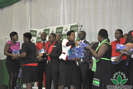 Chaquechef de marché est passée sur la scène pour faire le discours d'incitation.Distributrice de haut niveau Mme SINAKANILE a partagé l'histoire et le sens deréalisations avec son mari. Distributrice de haut niveau Mme Malter a appelé toutle monde à suivre les lauréats et à saisir l'opportunité du développement desmarchés pour gagner la voiture commerciale plus tôt. Manager une étoileMonsieur NKIWANE a encourage des distributeurs à gagné plus de prix plus élevéslors de la réunion de fin d'année. Manager trois étoiles Mme THEMBI a encouragétout le monde à prendre des affaires de Green World comme leur propre causepermanente et à se battre pour elle à travers son expérience de se consacrer àGreen World et ayant un grand changement dans sa vie et sa famille.