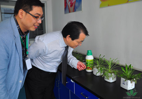 Monsieur David L. Zhang aécouté attentivement la présentation du rechercheur sur ce nouveau produit et aobservé la situation de cette plante fertilisée. Il a très apprécié ces élémentsnutritifs des plantes naturelles pures et a exprimé son approbation dans ledomaine de l'inhibition de la croissance des parasites, de la croissance de lagermination des graines, de la croissance des micro-organismes des plantesutiles, de l’amélioration du sol, de la qualité des plantes, de l’ augmentationdu rendement des plantes. Il a souhaité que ce 《Matières nutritivesvertes》---Bio-engraisest inroduit par plus de pays pour favoriser la produiction de l’agriculture.
