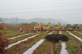 Présidente Dr Deming Li et vice-président M. David L. Zhang, ainsi que vice-président M. Guo Yan Chen prennent une photo de groupe devant le projet Nanjing Lishui en construction (Nanjing Lishui parc de l'industrie de la santé, Silicon agricole vallée de l'écologie originale approuvé par l'État)
