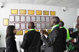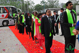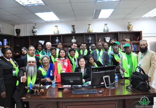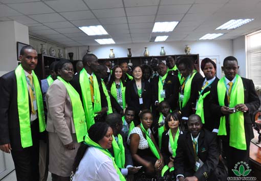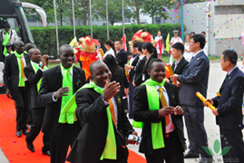 Le 19 mai 2014, d'excellents distributeurs à l'étranger gagnant le prix du voyage international ont visité la base de Green World à Tianjin en ce jour de fête. A 9 heurs 30, à la performance de la danse du lion jubilatoire et festive, les distributeurs sont venus à l'heure dite. Ils ont marché sur le tapis rouge, des distributeurs de l'Afrique du Sud, du Swaziland, du Zimbabwe, de la Zambie, du Kenya, du Ghana, de l'Angola, du Congo-Kinshasa, du Pakistan et du Canada sont entrés dans la base à Tianjin avec un esprit élevé. Groupe Green World a tenu la cérémonie de bienvenue grande pour les amis de loin. Dr Deming Li, présidente de Green World, en collaboration avec l'équipe de direction de Green World aligné pour les distributeurs mondiaux de différentes nationalités et couleurs de peau d'exprimer la salutation sincère et de partager l’éclat avec tout le monde !