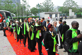 Marchés sur le tapis rouge, des distributeurs de l'Afrique du Sud, du Swaziland, du Zimbabwe, de la Zambie, du Kenya, du Ghana, de l'Angola, du Congo-Kinshasa, du Pakistan et du Canada sont entrés dans la base à Tianjin avec un esprit élevé.