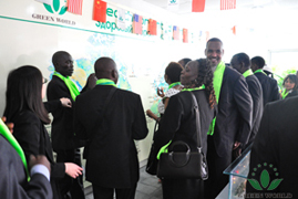 La salle d'exposition des produits était pleine de produits d'une grande variété, qui a attiré l'attention de toutes les personnes. Distributeurs de différents pays chaleureusement discuté avec l'autre. Bien que les langues sont différentes, la grande préoccupation et la passion des produits de Green World d'entre eux sont les mêmes. L'interprète a expliqué la connaissance des produits avec passion et introduit les produits en détail ainsi que répondu patiemment à toutes les questions soulevées par les distributeurs. Des produits de Green World ont obtenu les éloges de tout le monde.
