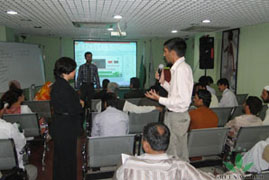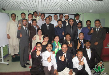 Du 28 mai au 1 juin 2014, la filiale de Green World au Pakistan a tenu la formation de maître de conférences de première session durée de 5 jours à Rawalpindi. Mme Liu Fengqi, directrice de la filiale au Pakistan, M. Moeen Malik, directeur régional de formation en Asie du Sud, Mme Wang Qian, chef du département de la formation et de l’éducation, M. Budiman Prasetyo, le maître de conférences du département de la formation et de l’éducation ont fait une formation systématique pour 30 maîtres de conférences candidats venant de différents endroits du Pakistan.