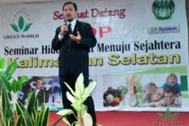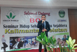 15 juin, le chef d'équipe de système G1 de la filiale de Green World en Indonésie M. EfsilonKaFatoni a organisé un grand séminaire d’entrepreneuriat à Ballroom Hôtel de Banjarmasin, 260 distributeurs ont participé à ce séminaire.