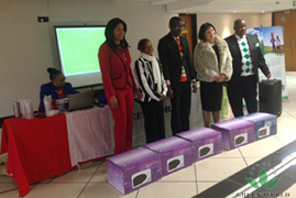 Ms.NYAMI (au milieu), une excellente distributrice gagnant le prix de Voiture, est montée sur la scène pour recevoir son prix avec ses familles. Au moment de la remise du prix, elle ne put retenir des larmes de bonheur. C'est la première fois pour elle de gagner si grand honneur dans Green World.