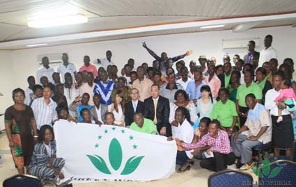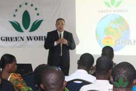 M. Isaac Zhou, le directeur général de la filaile au Ghana a prononcé un discours de motivation, il a encouragé les distributeurs de Ghana à jeter des bases solides de la cause de Green World et à bâtir le modèle de développement durable en suivant les réunions de formation intensives menées par M. Budiman qui aurait lieu pendant un mois complet en août 2014 dans la ville Accra et Kumasi au Ghana.