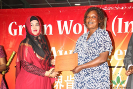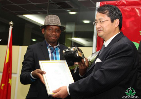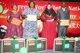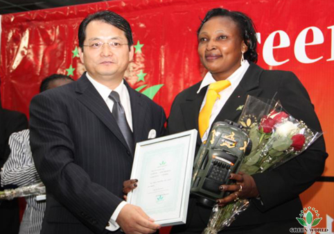 Mme Xuejiao Yu, chef du département de l'éducation de la filiale de Green World au Kenya, et M. Steven Mbogo a présenté des certificats et des prix aux excellents conférenciers