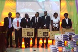 Directeur financier de la filiale en Zambie M. Jim Yang et la directrice informatique Xiaoping Chen ont décerné le prix de DVD aux gagnants